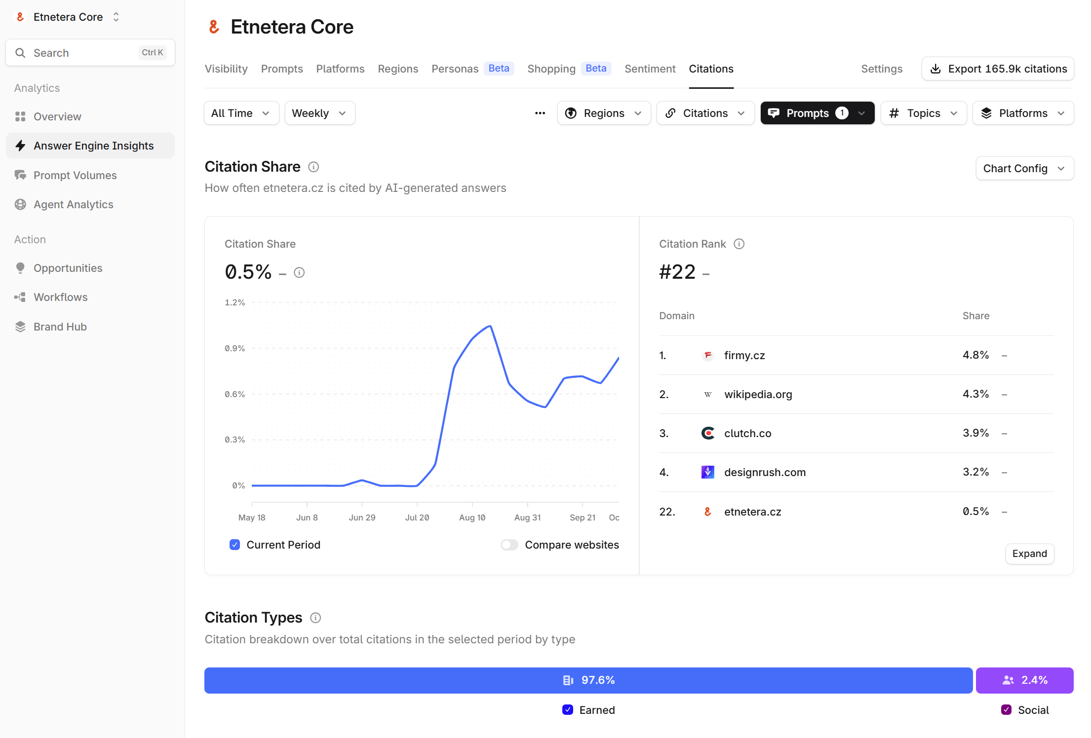 Základem dobrého měření je vygenerování správných promptů, jejich kategorizace, validace a postupné zpřesňování. Typickým příkladem bylo naše prvotní nastavení od specialistů Profound, po kterém nástroj porovnával Etneteru s giganty typu Microsoft nebo IBM. Bylo tedy hned jasné, že cílíme na úplně jiný segment trhu, než jsme potřebovali. Aby se vám to nestalo, pomůžeme vám nastavit měření tak, aby se vaše značka porovnávala s relevantní konkurencí a mířila na správný trh.