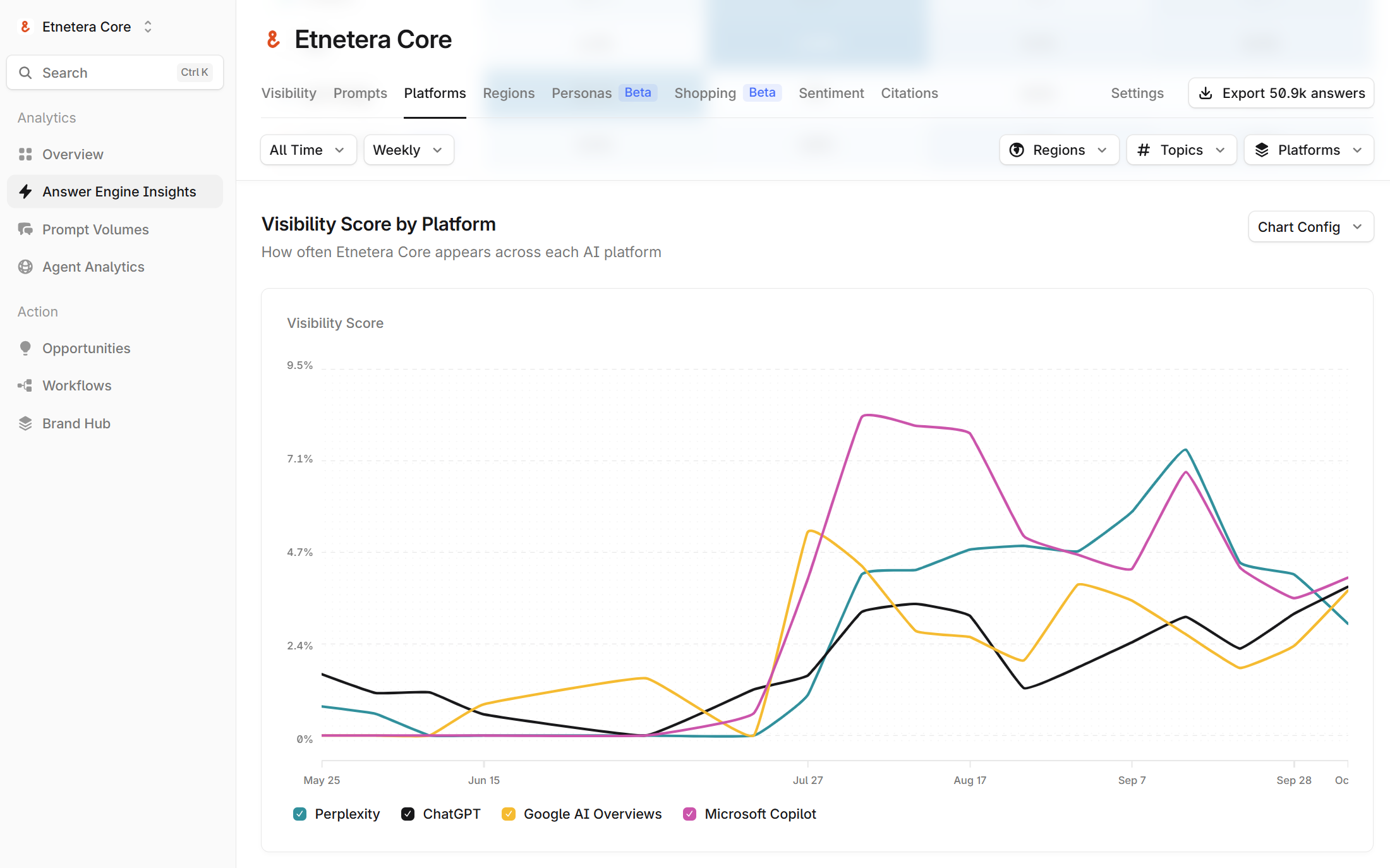 My v Etnetera Core propojujeme zkušenosti z reálných projektů s partnerstvím s Profoundem. Díky tomu dokážeme přesně změřit, kde se vaše značka nachází, jak ji vnímají LLM modely, a navrhnout konkrétní kroky k posílení vaší online přítomnosti.