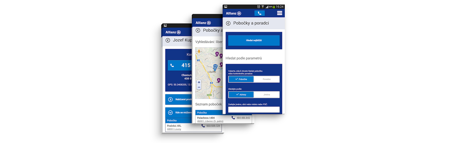 Vyhledávání obchodních zástupců a poboček (kontaktních míst) s detailním zobrazením kontaktních informací, nabízených produktů, otevíracích hodin a dalších užitečných informací.